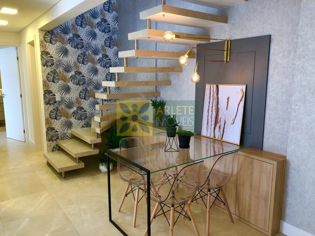 Cobertura duplex finamente mobiliada com 03 dormitórios (sendo 01 suíte), living para 02 ambientes (sala de estar e jantar), cozinha, área de serviço, amplo terraço com churrasqueira, banheiro social, hidro, etc. Possui 02 vagas de garagem privativa, com aproximadamente 155m² de área privativa.