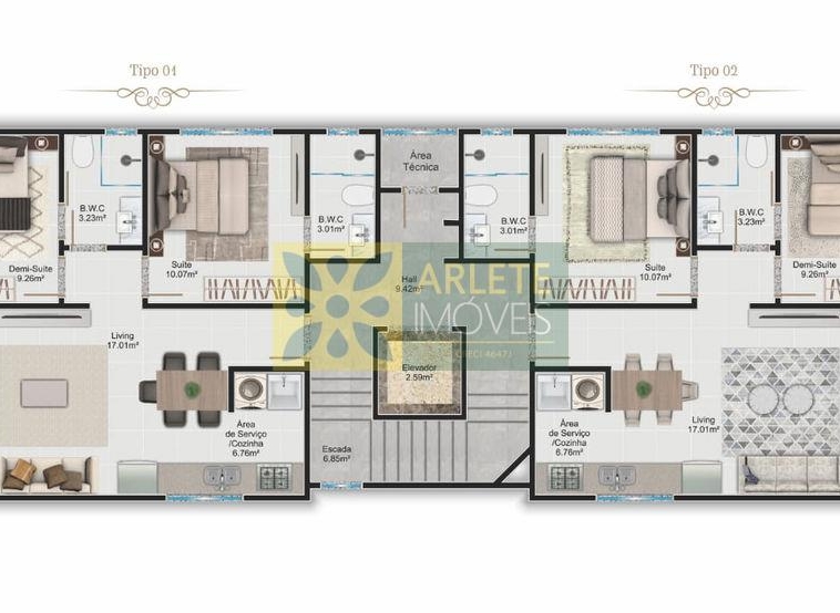 Área privativa 62,45m²;