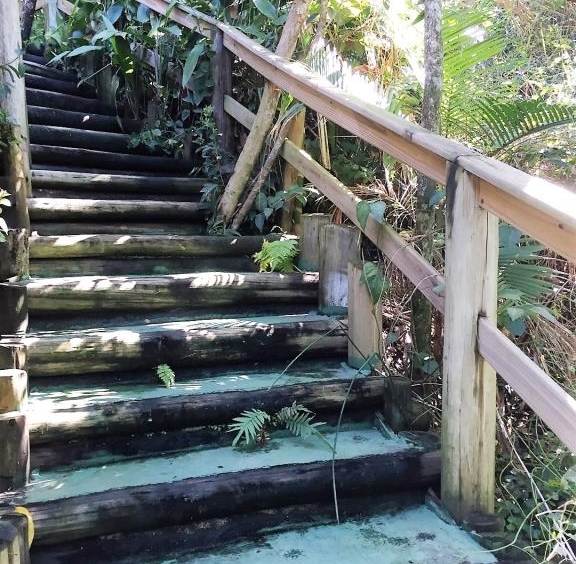 - Localizada em uma encosta, para chegar na casa são 40 degraus, chega-se diretamente na varanda com um agradável deck